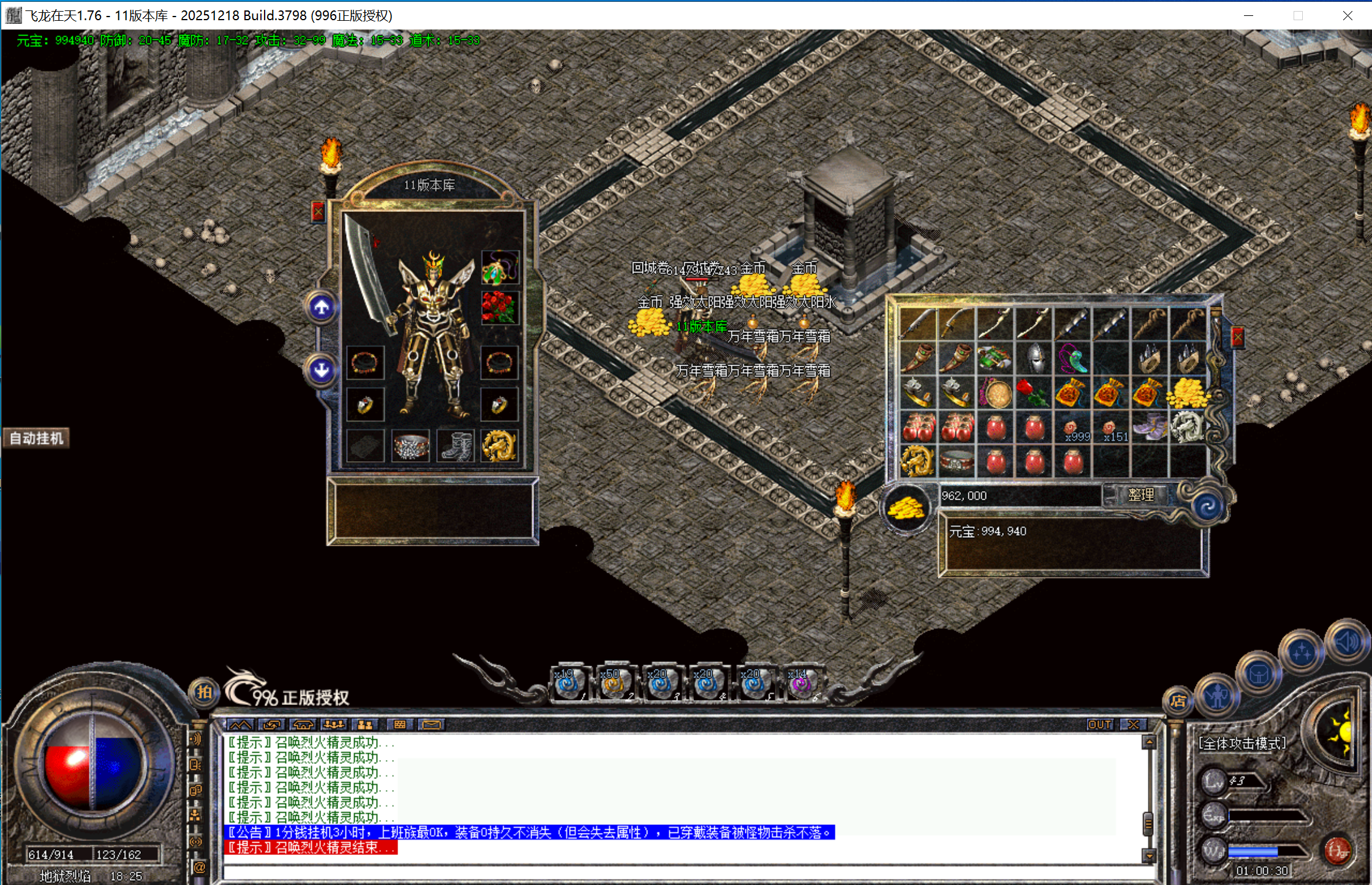 : 996PC正版授权-全新独家1.76极品+6,纯金币、无元宝、装备自动拾取,回收,带假人控制台,GM装备发送
