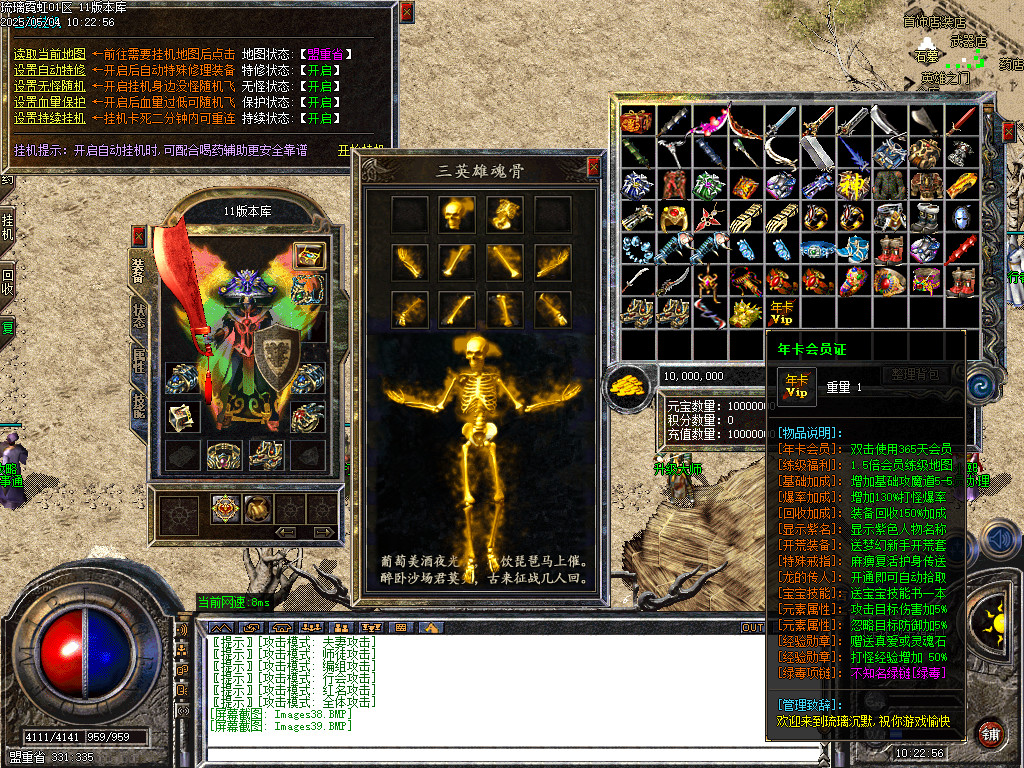 GOM引擎 全网独家新百区+分身+秘境+极品回收+幽谷古道+指月+靴子腰带;新百区服务端 演示服微端下载地址:https://sdo.hfmir.com/跨服功能演示视频较大,请耐心等待,或先暂停待缓存后观看,长时间未反应请刷新后观看自动挂机过程中,自动触发系统拾取检测,普通装备自动回收,极品装备自动保留背包开启吃药保护后;血量低于设定值自动吃药,自动买药购买药品后自动拆解至游戏界面左下方显示数量,且不入背...