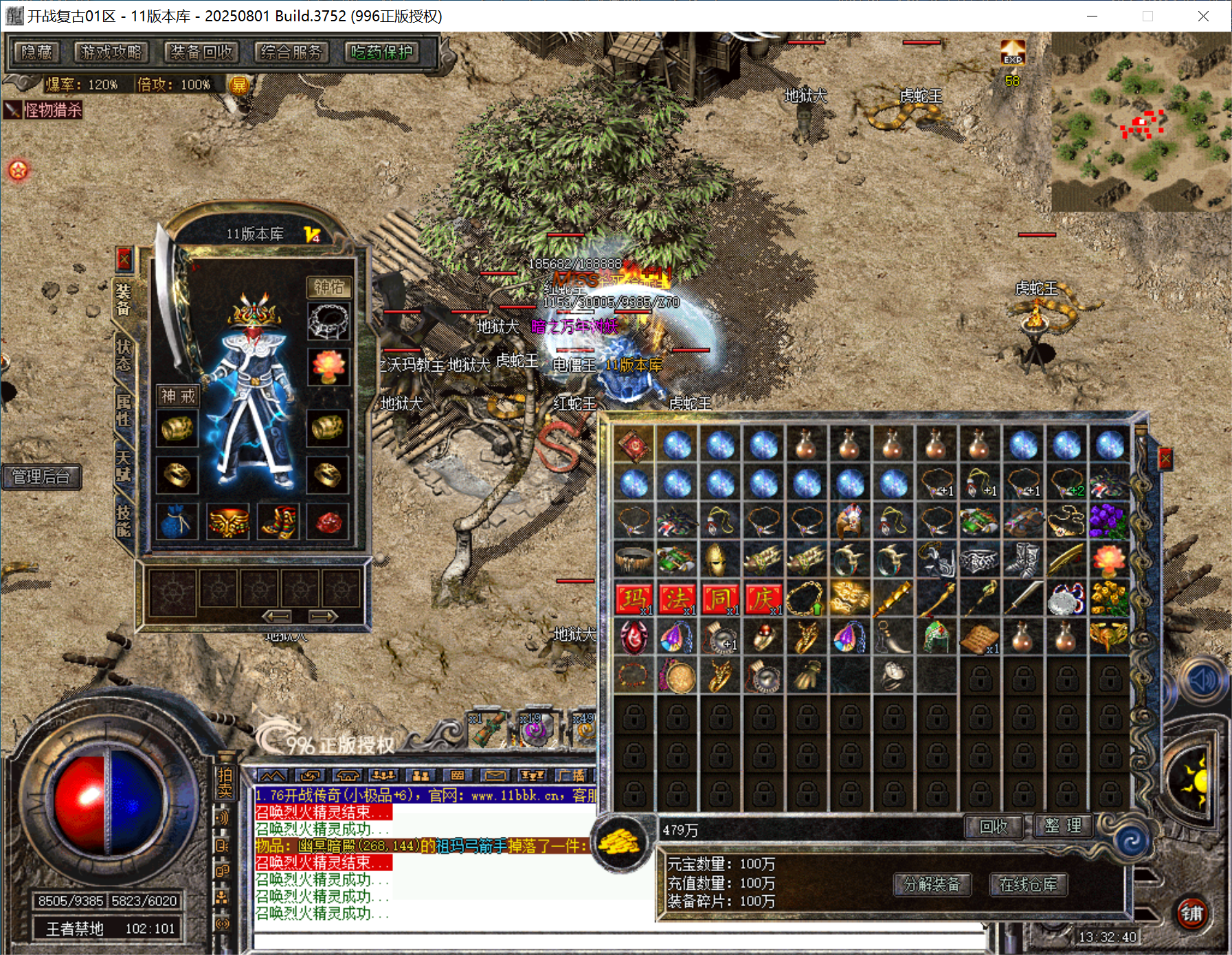 996PC正版授权-全新独家1.76极品+6,纯金币、无元宝、装备自动拾取,回收,带假人控制台,GM装备发送